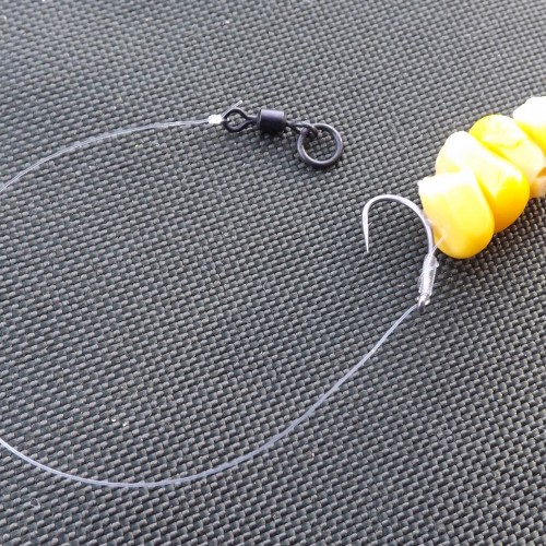 Un autre montage au cheveu, le quick stop se montre particulièrement adapté pour escher au cheveu les appâts fragiles tels que le maïs, la finesse du quick stop permet bien des fantaisies, on apprécies les différentes tailles disponibles mais aussi le fait de pouvoir l’utiliser avec des bouillettes et bien d’autres appâts, indispensables pour un pêcheur au méthod feeder.