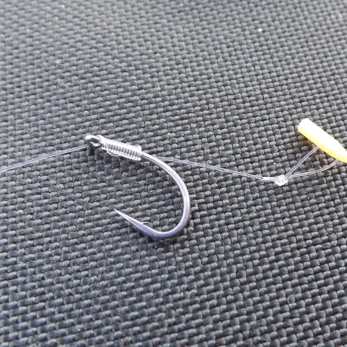 Il est similaire au montage avec quick stop mais à réserver aux bouillettes ou pellets, pour les esches fragiles il faut lui préférer le quick stop.