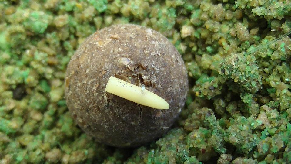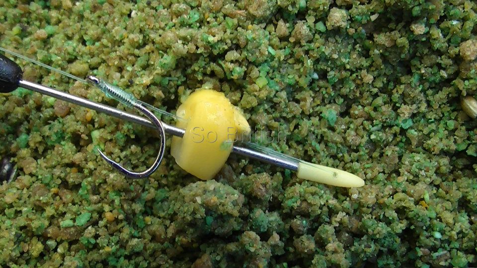 Une bouillette de 16mm ne nécessitera pas une longueur identique à un pellet de 8mm et pour être le plus efficace possible il ne faut pas trop éloigner l’hameçon de l’appât, 2 à 3mm est un espace correct entre hameçon et appât.