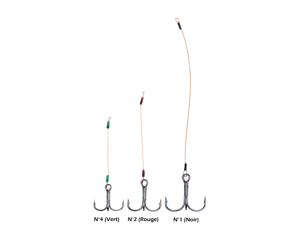 Un hameçon triple Daiwa monté sur un brin acier 1x19 idéal pour finaliser le montage d’un shad long pour la verticale (sandre) et la pêche du brochet en linéaire.