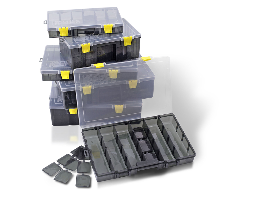 Les fermoirs permettent une prise en main et une fermeture optimale. Les couvercles transparents permettent une vision instantanée de ce qui s’y trouve. Les Tackle Keepers sont ‘worm-proof’, c’est à-