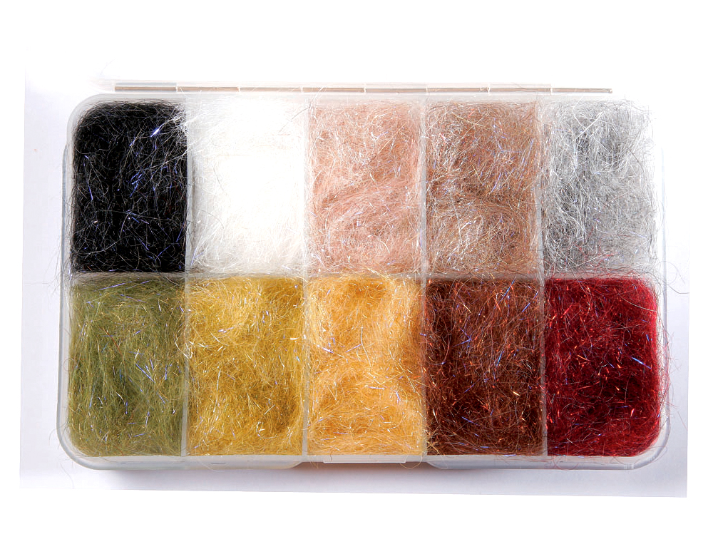 Dubbing de lapin et de lièvre naturel, mixé avec des fibres synthétiques de couleur perle et glace.