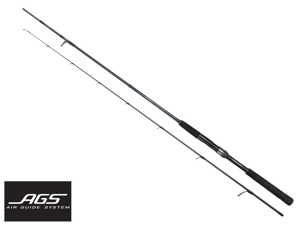 • Anneaux carbone AGS exclusifs Daiwa. Sous les deux premiers Anneaux se trouvent une nappe de carbone qui renforce le blank pour éviter que la base de l’anneau ne comprime le blank lors d’une forte tension