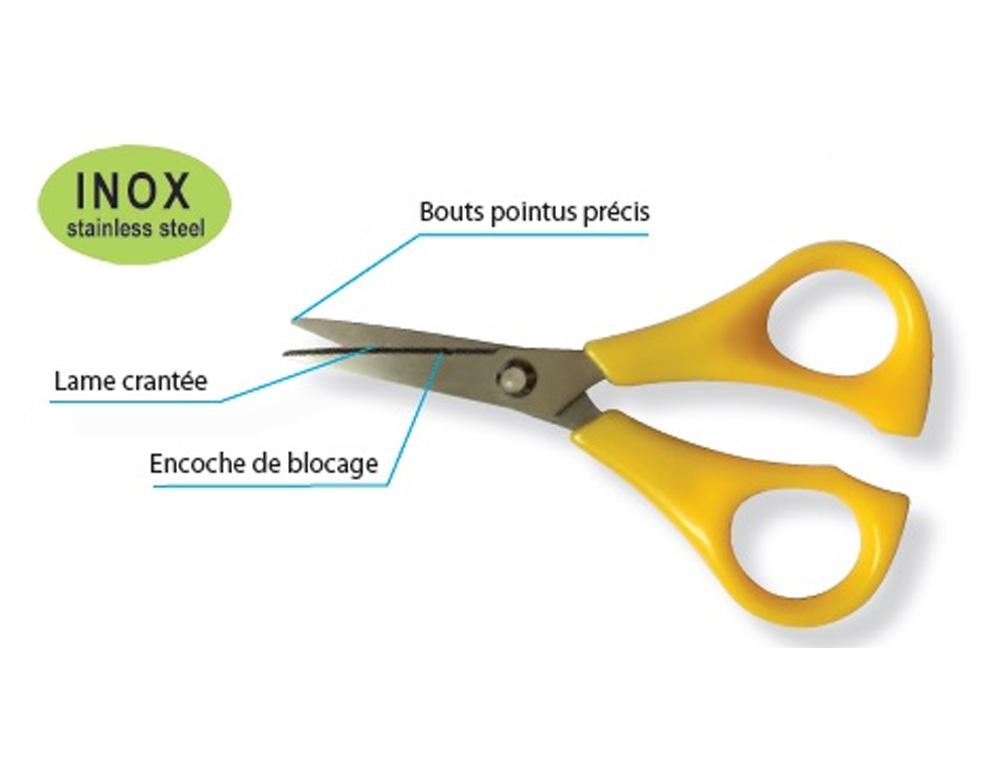 Les couleurs des ciseaux peuvent être rouge, jaune, bleu, vert ou orange suivant les arrivages. [lire la suite]