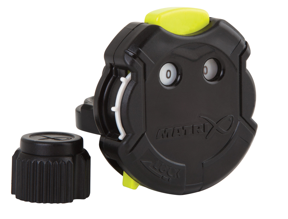 Le "fish clicker" peut être fixé entre la tête et le manche d'épuisette ou directement sur le manche à l'aide de l'écrou plastique fourni avec.