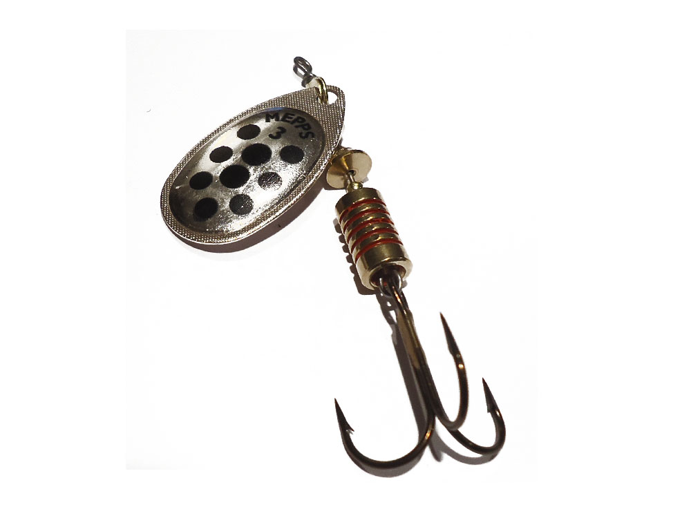 2.60 € La cuiller Aglia Argent points noirs n°3 Mepps pèse 7 g.