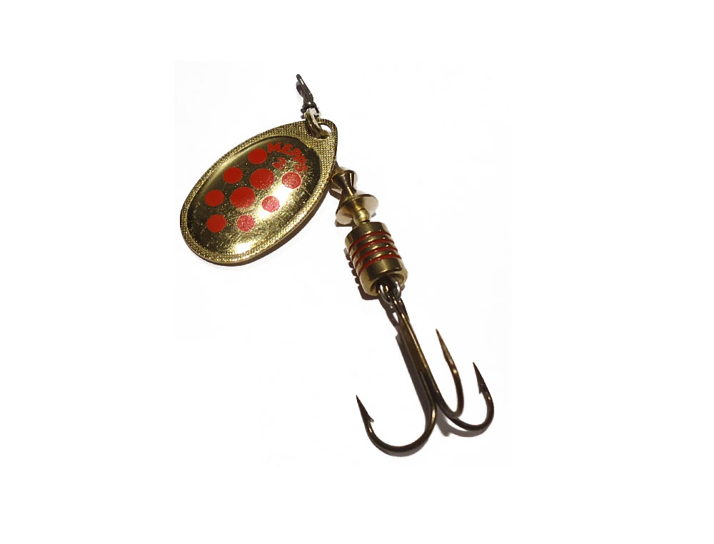 2.90 € La cuiller Aglia Or points rouges n°2 Mepps pèse 4.5 g.