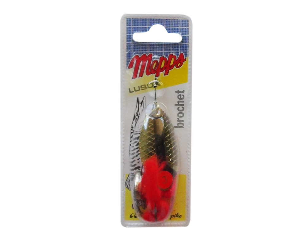 La Lusox est une excellente cuiller pour le brochet, proposée ici en version n°3 couleur or (poids de la cuiller de 7.5 g. et poids de l'avançon de 13 g.)