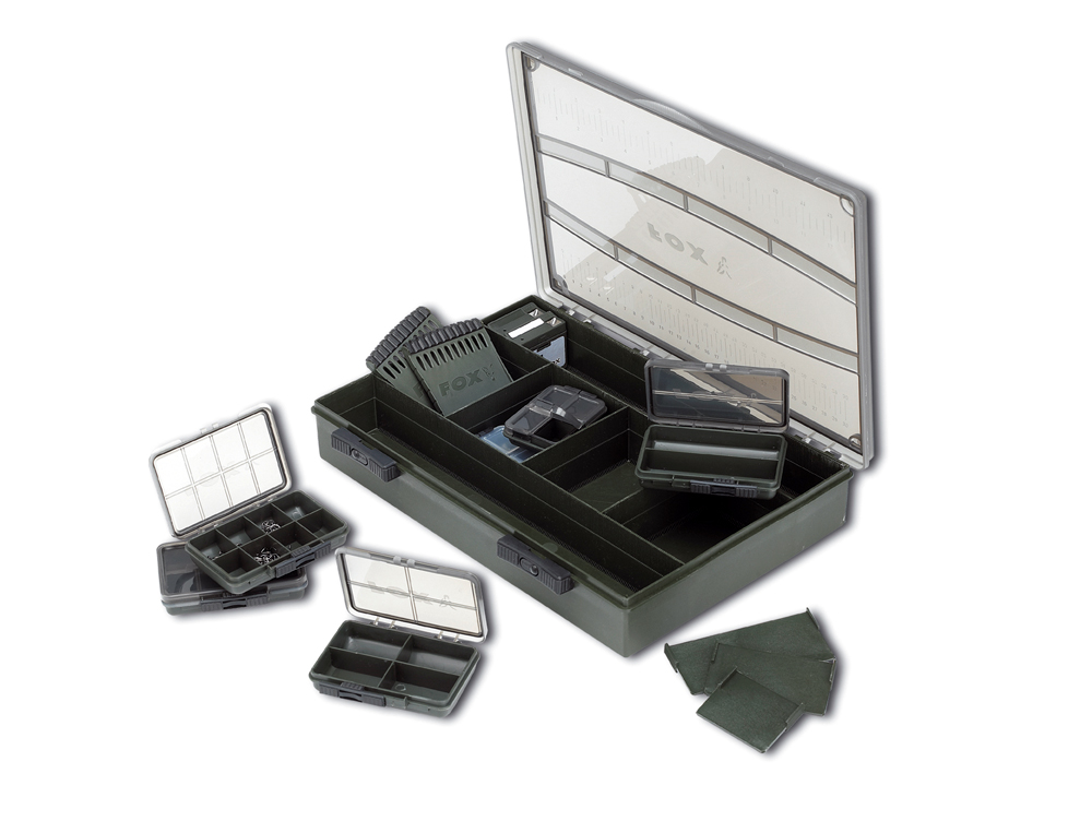 Les boîtes F Box Deluxe sont vendues complètes avec une variété de petites boîtes F Box et dévidoirs, apportant au pêcheur une solution personnalisée de rangement pour tout le petit matériel carpe.