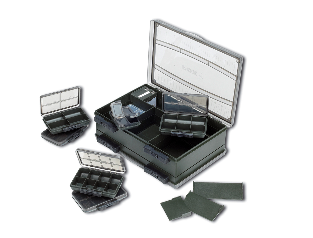 Les boîtes F Box Deluxe sont vendues complètes avec une variété de petites boîtes F Box et dévidoirs, apportant au pêcheur une solution personnalisée de rangement pour tout le petit matériel carpe.