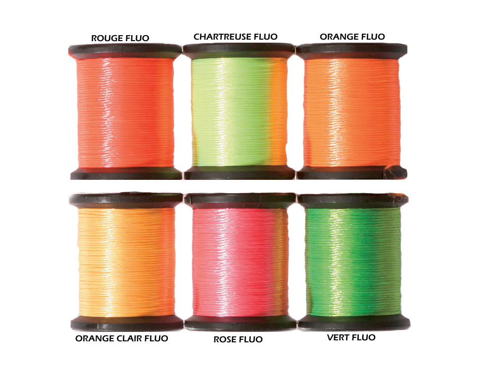 Fil multibrins aux couleurs fluos recommandé pour les tags et les épaulements de nymphes et les joues de chironomes.