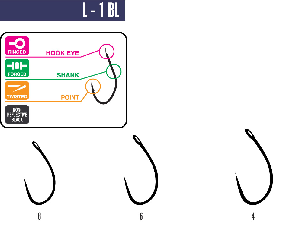 Hameçon L1 BL Hayabusa carbone 80 forgé black nickel anti-reflet à anneau