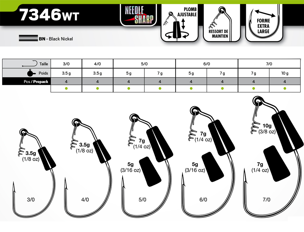 Hameçon Texan VMC 7346WT BN n°7/0 _ 10g. |