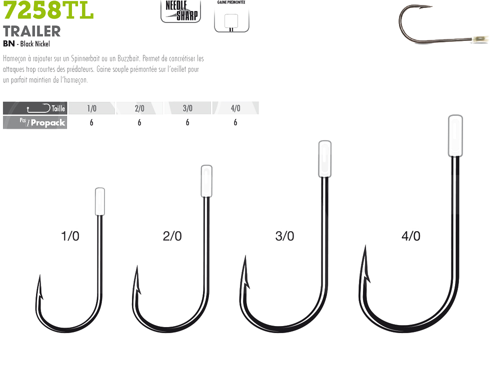 à partir de 7.35 € Hameçon à rajouter sur un Spinnerbait ou un Buzzbait. Permet de concrétiser les attaques trop courtes des prédateurs. Gaine souple prémontée sur l’oeillet pour un parfait maintien de l’hameçon.