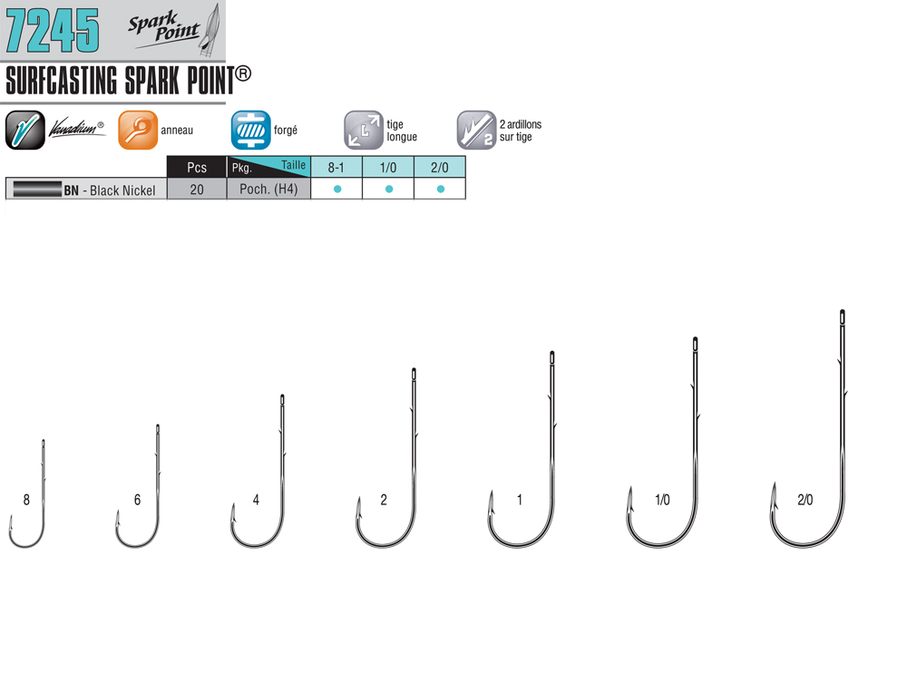 Hameçon 7245 surfcasting spark point Black Nickel VMC