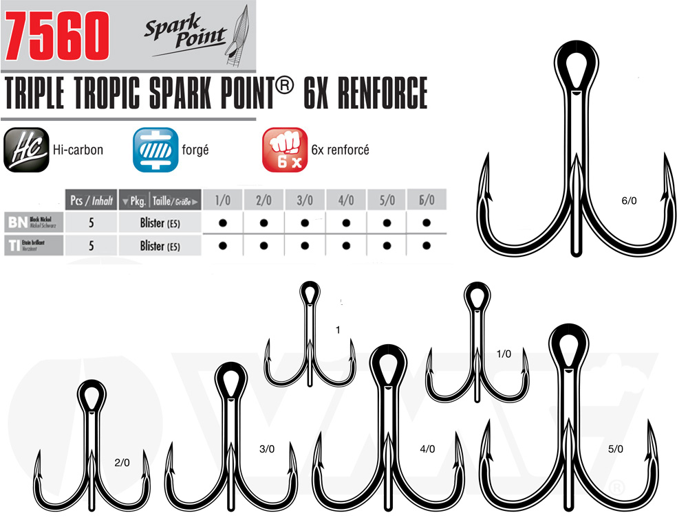 Hameçon VMC 7560 BN Triple Tropic Spark Point 6X Renforcé n°5/0