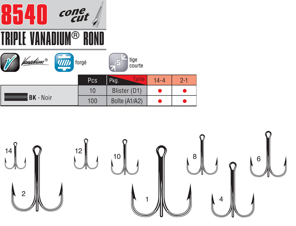 Hameçon Triple VMC 8540 Noir (x10) n°14 |