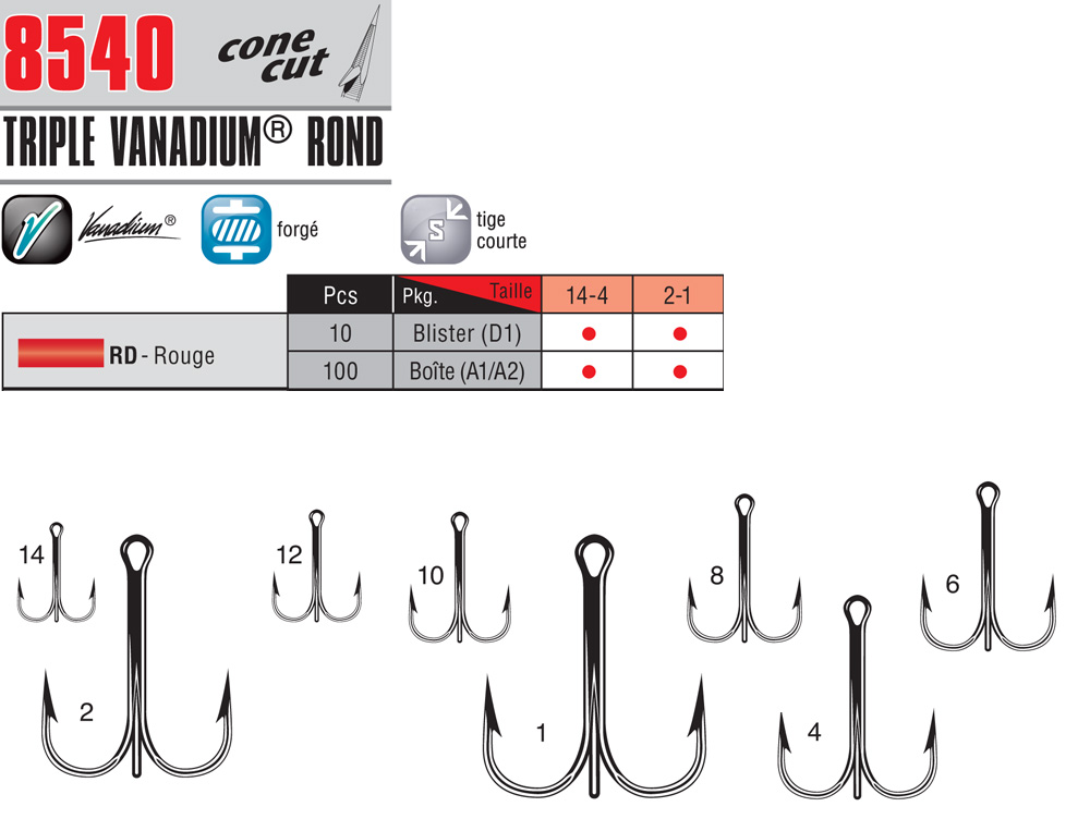 Hameçon 8540 Triple Vanadium Rond Rouge