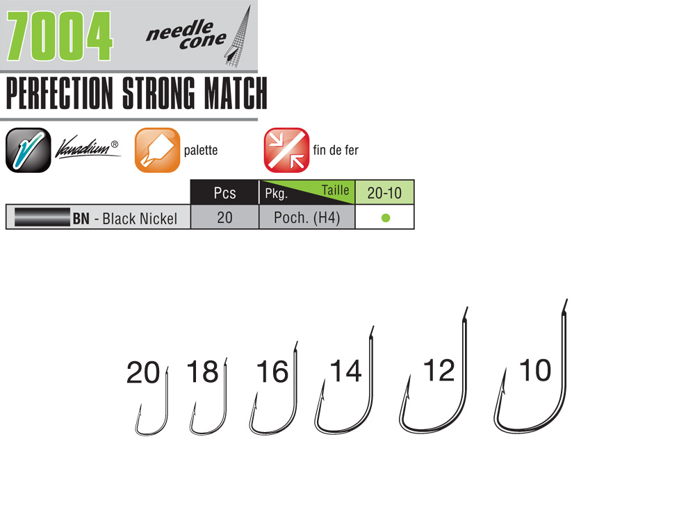Hameçons 7004 BN (Black Nickel) perfection strong match, à palette, fin de fer.