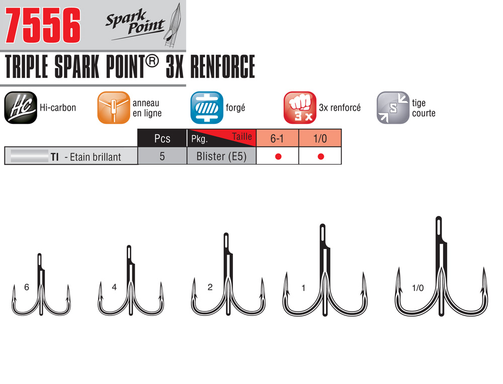 Hameçon VMC Triple 7556 TI Spark Point 3X