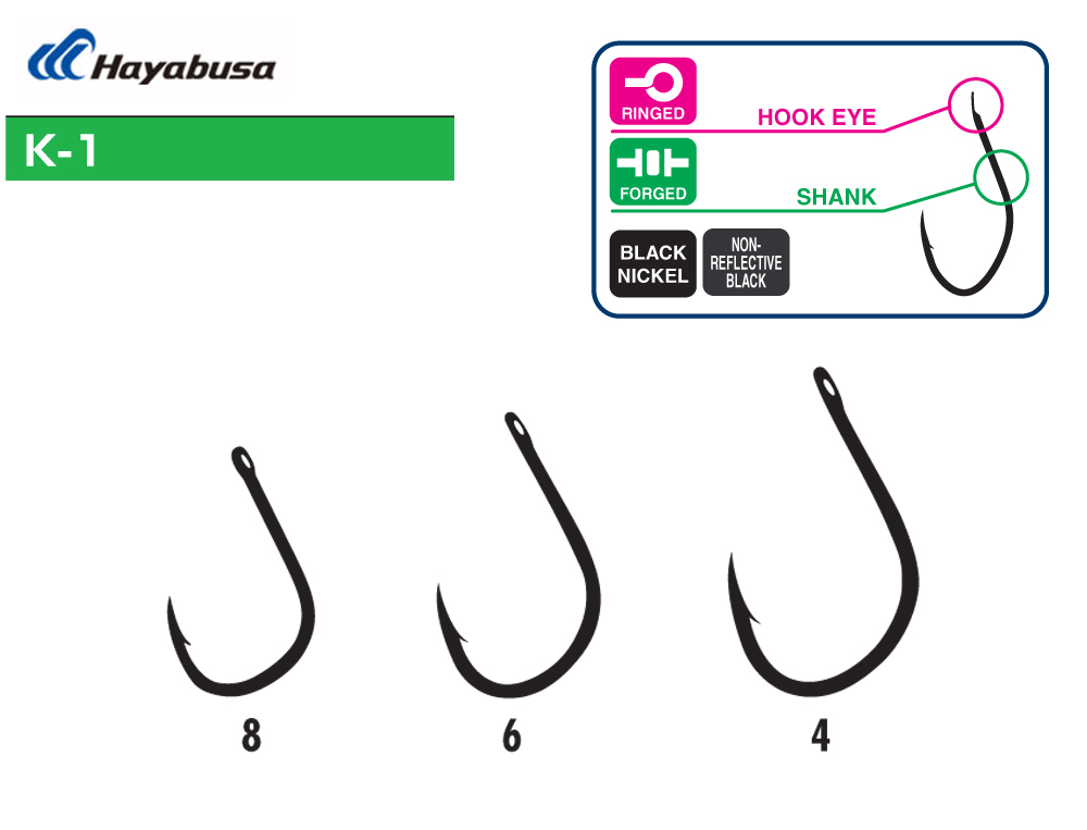 Hameçon K1 droit Hayabusa carbone 80 forgé black nickel à anneau