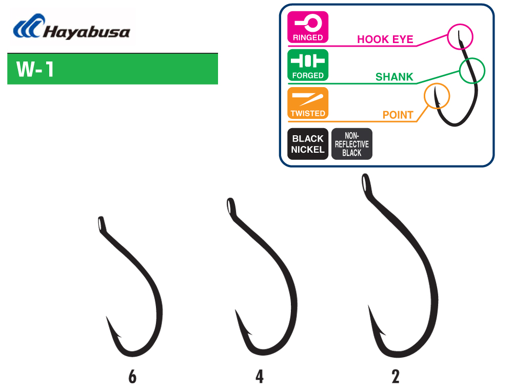 3.30 € Hameçon W1 incliné Hayabusa carbone 80 forgé non reflective black à anneau (anti-reflet)
