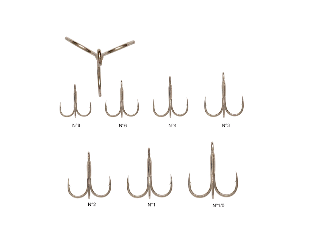 Leur forme classique avec répartition équilatérale des branches en font d’excellents triples de queue pour tous les leurres.