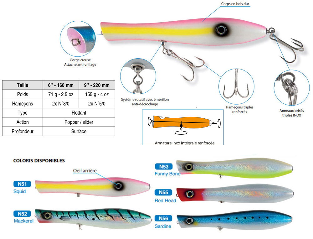 à partir de 42.95 € • Popper en bois ultra solide (excellente flottabilité)