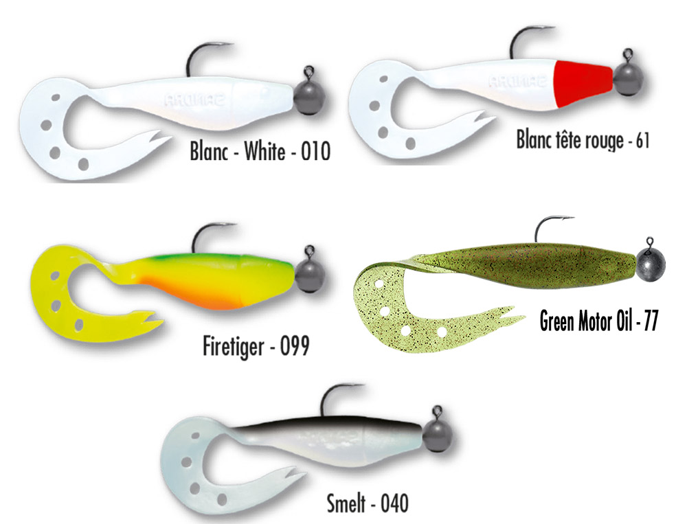 Nous vous proposons ici les leurres Sandra 9 cm monté sur une tête plombée ronde de 7g. en vente à l'unité.