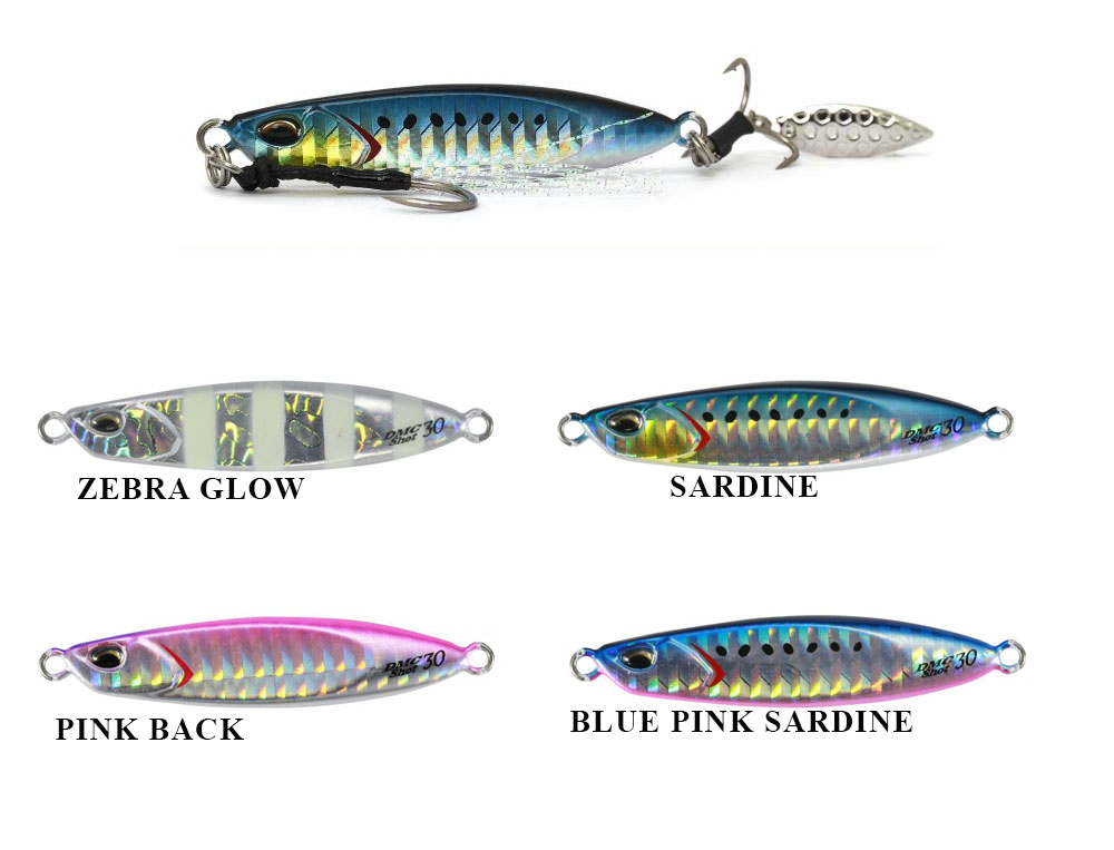 Le Drag Metal Cast Shot est un casting jig qui se distingue par ses flancs plats et son hameçon triple à palette en queue. Cette palette vient compléter des flashs lumineux importants, émis lors de la descente du leurre flanc sur flanc, en apportant une vibration supplémentaire. C’est un leurre polyvalent, qui peut être animé par une succession de coups de scion entrecoupés de pauses, en traction en le laissant redescendre bannière semi tendue pour le faire planer, mais aussi en simple récupération linéaire. Il est très simple à utiliser, depuis le bord comme en bateau, en mer comme en eau douce, et se lance à très grande distance.