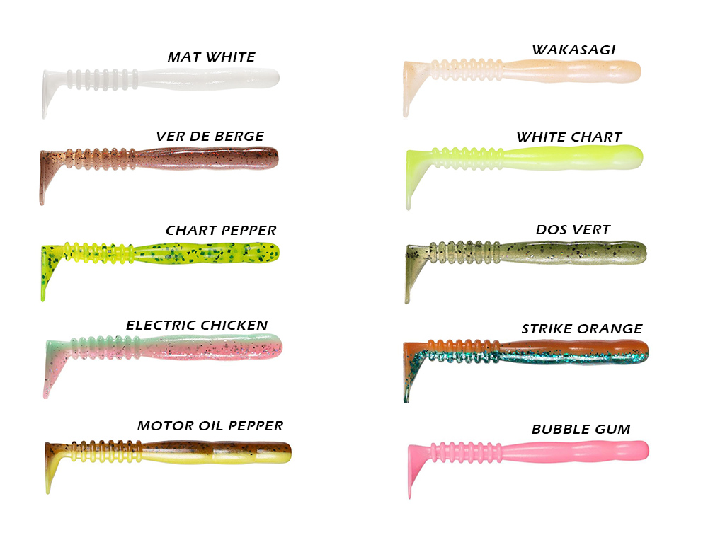 Ce petit shad a la particularité d’avoir une section ovale (Oval Body Design) qui lui donne un rolling très prononcé.