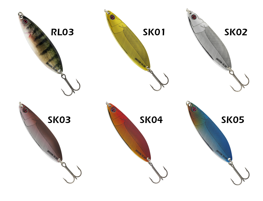 La gamme de cuillers ondulantes Skoon Fat est plutôt destinée à la pêche de la truite en ruisseau, rivière, lacs et réservoirs ainsi qu’à celle des carnassiers lorsqu’ils se focalisent sur de petites proies.