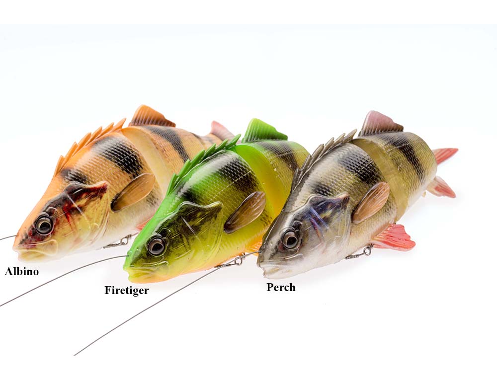 La 4ème dimension est née grâce à notre impression détaillée Photo Chrome Skin et à un attractant provoquant plus d’attaques. Les détails rendent le leurre tellement imitatif qu’il devient de plus en plus dur pour les poissons prédateurs de résister à l’envie d’attaquer. Chaque coloris a été testé et ajusté à la perfection, et l’attractant présent dans le leurre est un véritable plus lorsque les conditions sont difficiles ! La 4D Line Thru Perch a été conçu de manière à modifier son armement facilement. Elle est pré-montée avec un Carbone 49 et les clips de fixation des hameçons triples sur le leurre. La 4D Perch bénéficie du même cocktail d’avancées techniques que les 4D Trouts à savoir : chambre à attractant, réalisme Photo Chrome, l’attractant ADN, sans oublier sa nage hyper réaliste en S : irrésistible ! N’oublions pas que dans de nombreux lacs la perche est le poisson ciblé par les plus gros prédateurs. Que l’on parle de brochets géants ou de très gros Musky les spécialistes recherchent très souvent les bancs de perches (ou de perchaude au Québec) pour délimiter leur zone de pêche. Les jours où les perches seront au menu, la perfection de ce leurre vous permettra d’attraper un monstre ! Lests inclus dans le package