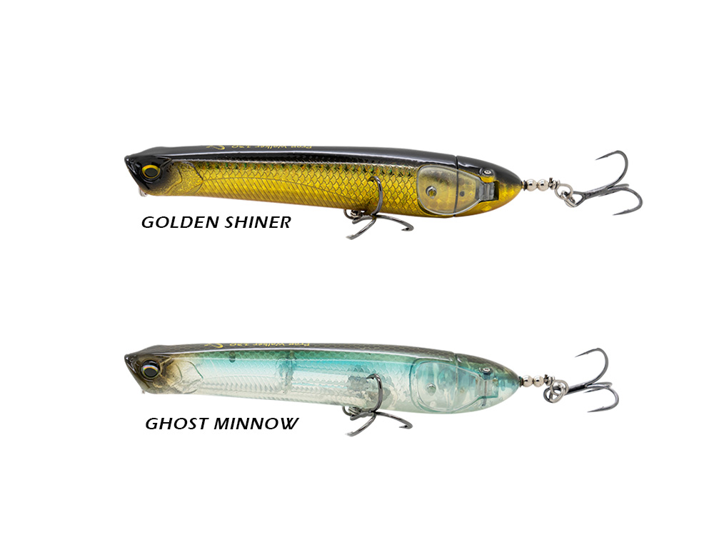 Leurre Stickbait qui peut s'animer en walking the dog et qui peut également se transformer en propper avec des hélices amovibles.