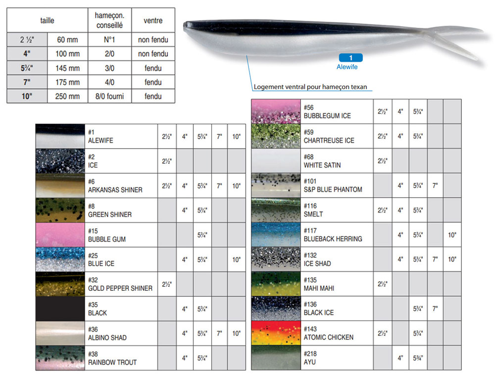 9.95 € Sa forme effilée et sa queue en V lui confèrent une nage souple et planante. Très populaire aux USA, il est incontournable dans toutes les boîtes à leurre.