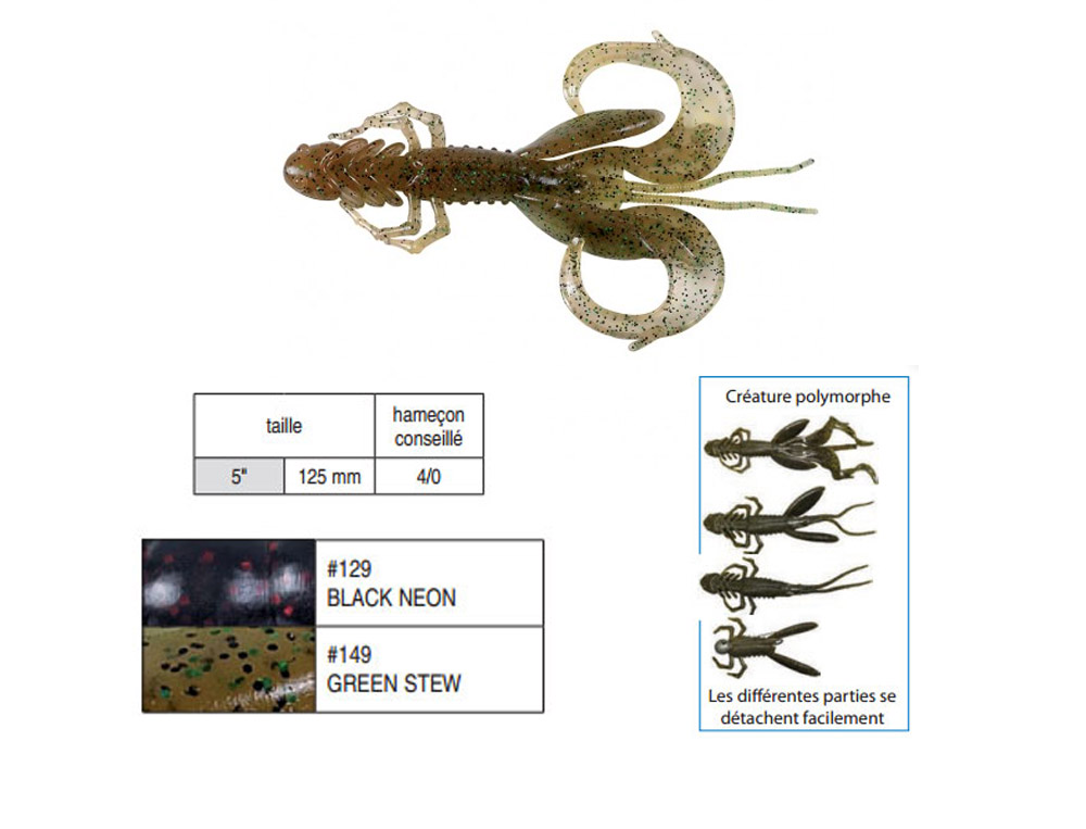 Cet « alien » offre en fait la combinaison magique d’un très grand nombre d’imitations : Insecte terrestre, larve, petit crustacé, vers, etc... A vous d’inventer la créature que vous souhaitez !