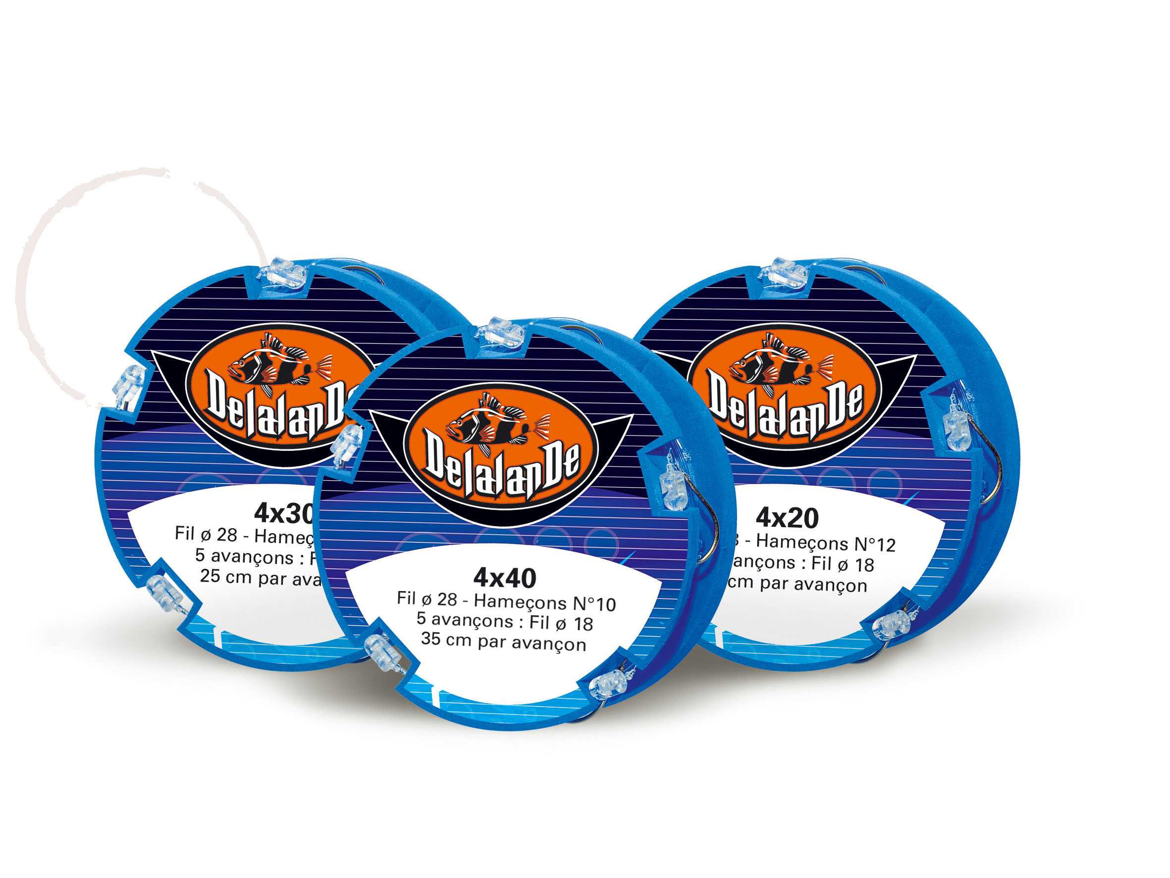 - 5 avançons montés sur une perle rotative fendue, qui se fixent directement sur le corps de ligne par pression, en « clipsant ».