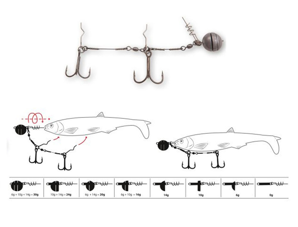 Le nouveau Yolo Shad System est une vraie innovation pour les pêcheurs de carnassiers qui souhaitent animer leur leurre à toutes les profondeurs standards le tout en un seul et unique montage. La tête plombée est divisée en trois parties, permettant aux pêcheurs d’utiliser 8 grammages différents,