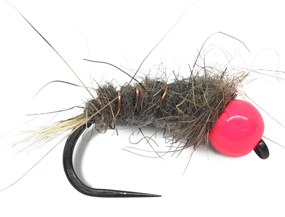 Cette nymphe a une très belle histoire, il y a une dizaine d’années Laurent Jauffret était en guidage sur la Sorgue et la veille au soir, il avait fait un violent orage, l’eau était piquée et toutes les nymphes habituelles ne fonctionnaient pas, cette nymphe tête rose fluo a permis dans des conditions difficiles de faire une pêche formidable ce jour là.