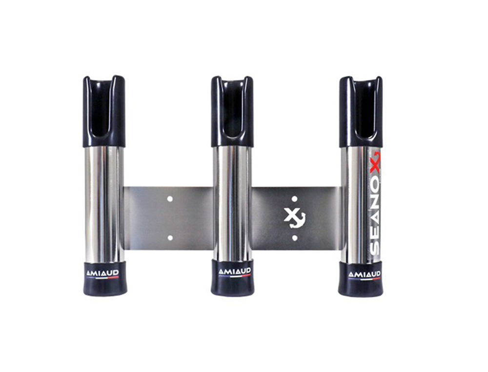 Porte canne Seanox 3 cannes ouvert plat bord Inox miroir embout noir