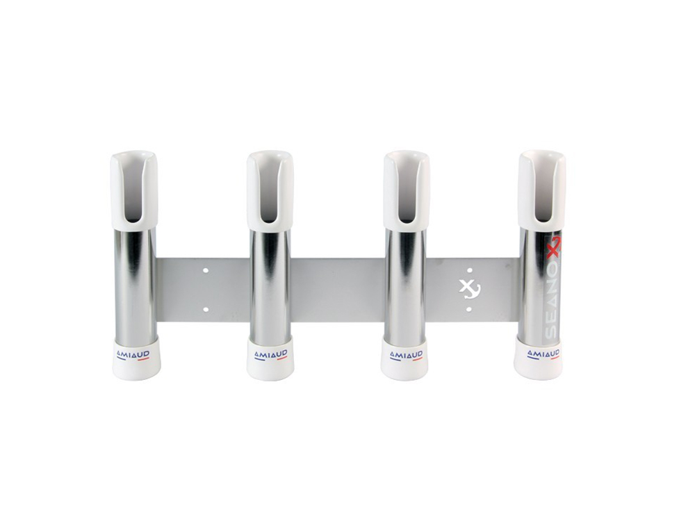 Porte canne Seanox 4 cannes ouvert plat bord Inox miroir embout blanc