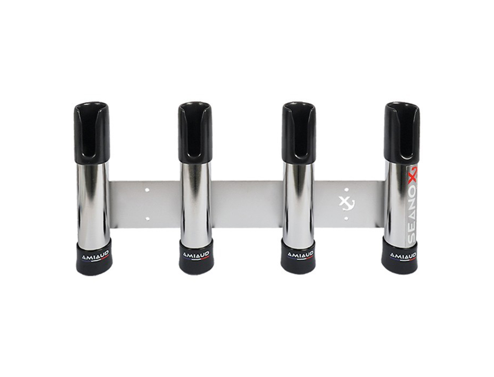 Porte canne Seanox 4 cannes ouvert plat bord Inox miroir embout noir