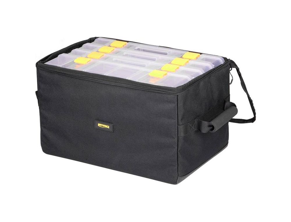 59.90 € . 3 boîtes fines et une boîte plus profonde pour les leurres plus volumineux . Le sac est muni de deux poignées fusionnées qui permet de le porter à une main ou à deux mains. Le sac est compact et carré . Le couvercle transparent permet de voir...[lire la suite]