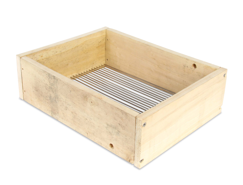 Cadre en bois, tige inox diamètre 2.4 mm.