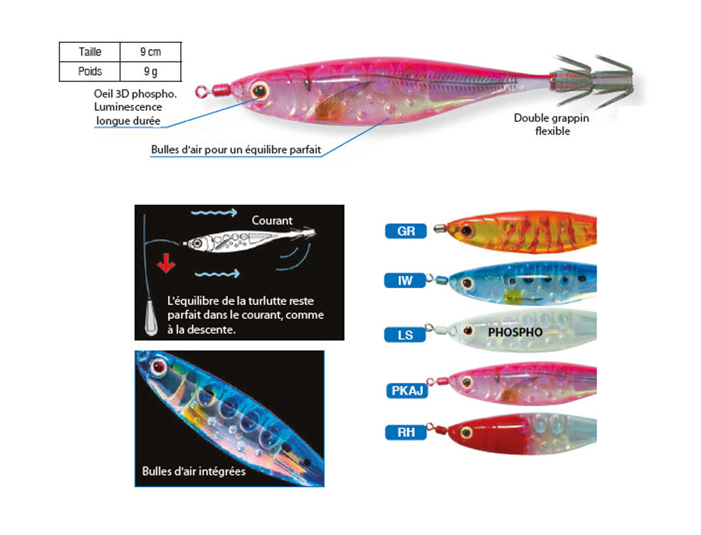 La Crystal Ultra est doté d'un oeil 3D phospho permettant une luminescence longue durée, de bulles d'air pour un équilibre parfait et d'un double grappin flexible. [lire la suite]